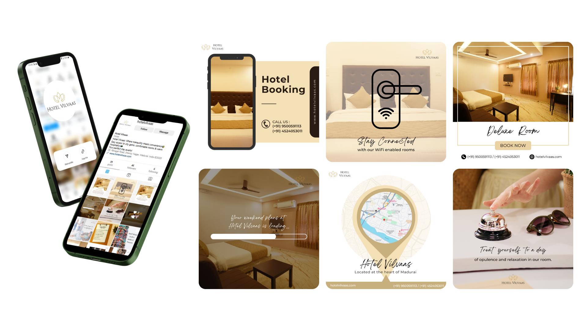 For Hotel Vilvaas, we set out to create a brand experience that reflects serenity, soul, and sophistication. Rooted in simplicity, the visual identity we crafted brings together the sacred trifoliate bael leaf and the Shiva Lingam — a seamless blend of heritage and modern design. The result is a timeless logo that radiates calm and spiritual elegance. Alongside branding, we designed a refined, intuitive website and a serene social media presence that capture the hotel’s essence — peaceful, premium, and deeply connected to Indian tradition. Designed with intention. Delivered with impact.